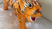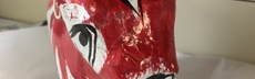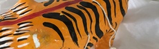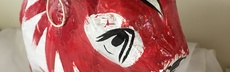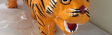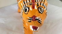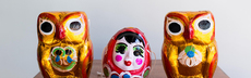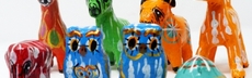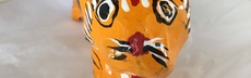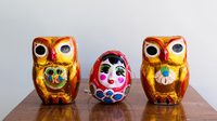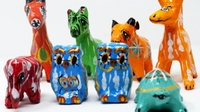 Next, the object is whitewashed with a coat of paint using gouache or enamel, and then finally decorated with brightly colored paints.