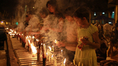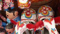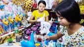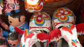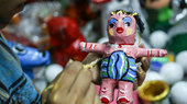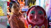 Sayama Khin used to see more papier-mâché toys when she was younger. Today, she sees larger papier-mâché toys in display cases at the homes of people who live in the city.