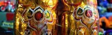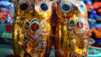 -Se kweq or gold foil-covered owls that symbolize wisdom and good luck, similar to the meaning of owls in many cultures, often found in shop windows.